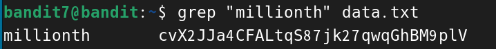 다음 레벨을 위한 password는 data.txt 파일의 millionth 단어 옆에 저장되어 있습니다.