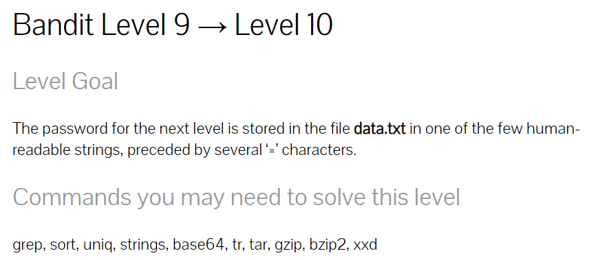 Bandit Level 9 → Level 10