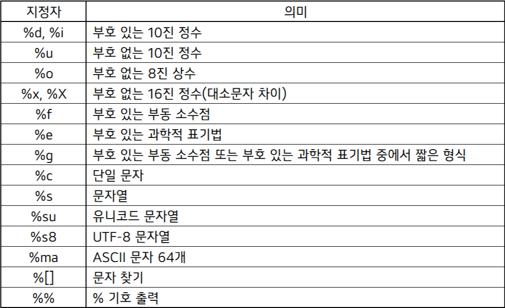 - 형식 지정자