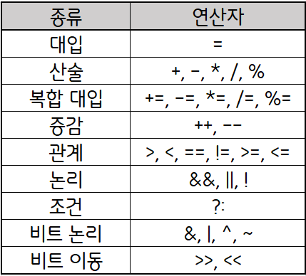 - 연산자의 종류