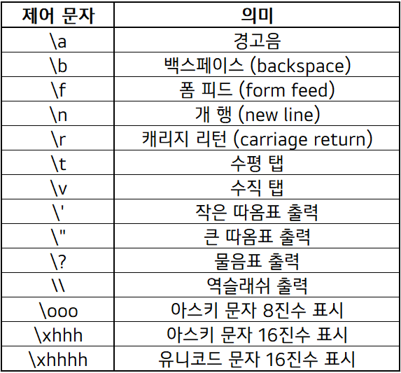 제어 문자(이스케이프 시퀀스)란 특정 문자를 출력하고자 할 때 사용하는 문자이다.
