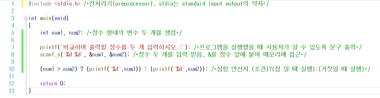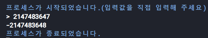 - 4행에서 int형 변수에 저장할 수 있는 최대 숫자인 2,147,483,647을 저장