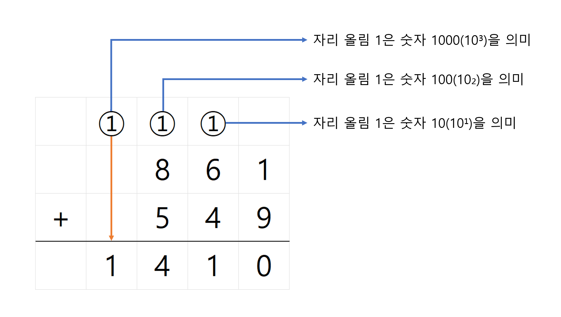 10진수, 2진수와 같이 자리 올림이 8¹, 8² / 16¹, 16²의 식으로 증가한다.