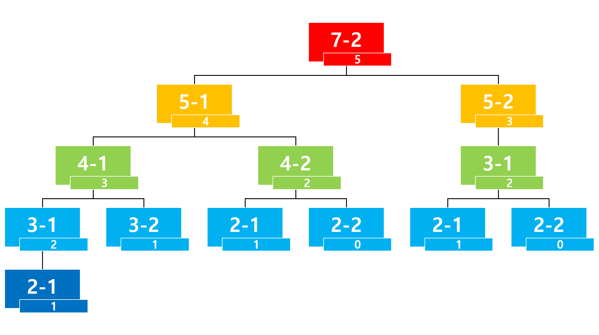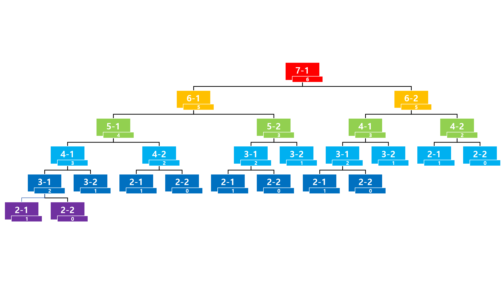 만약 7을 입력한다면 아래의 표처럼 재귀함수가 반복되고