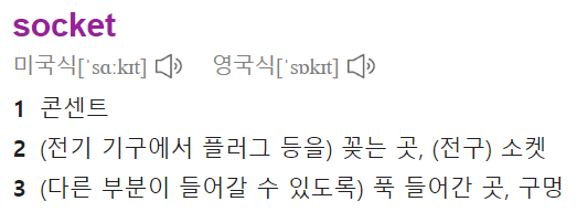소켓의 사전적 의미는 "구멍", "콘센트", "연결" 등의 뜻을 가진다.