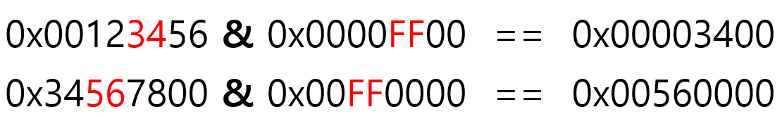 0x00003400๊ณผ 0x00560000์ฒ๋ผ ์ฎ๊ฒจ์ง ์ซ์๋ฅผ ์ ์ธํ๊ณ ๋ชจ๋ 0์ด ๋์ด์ผ ํ๋๋ฐ,
