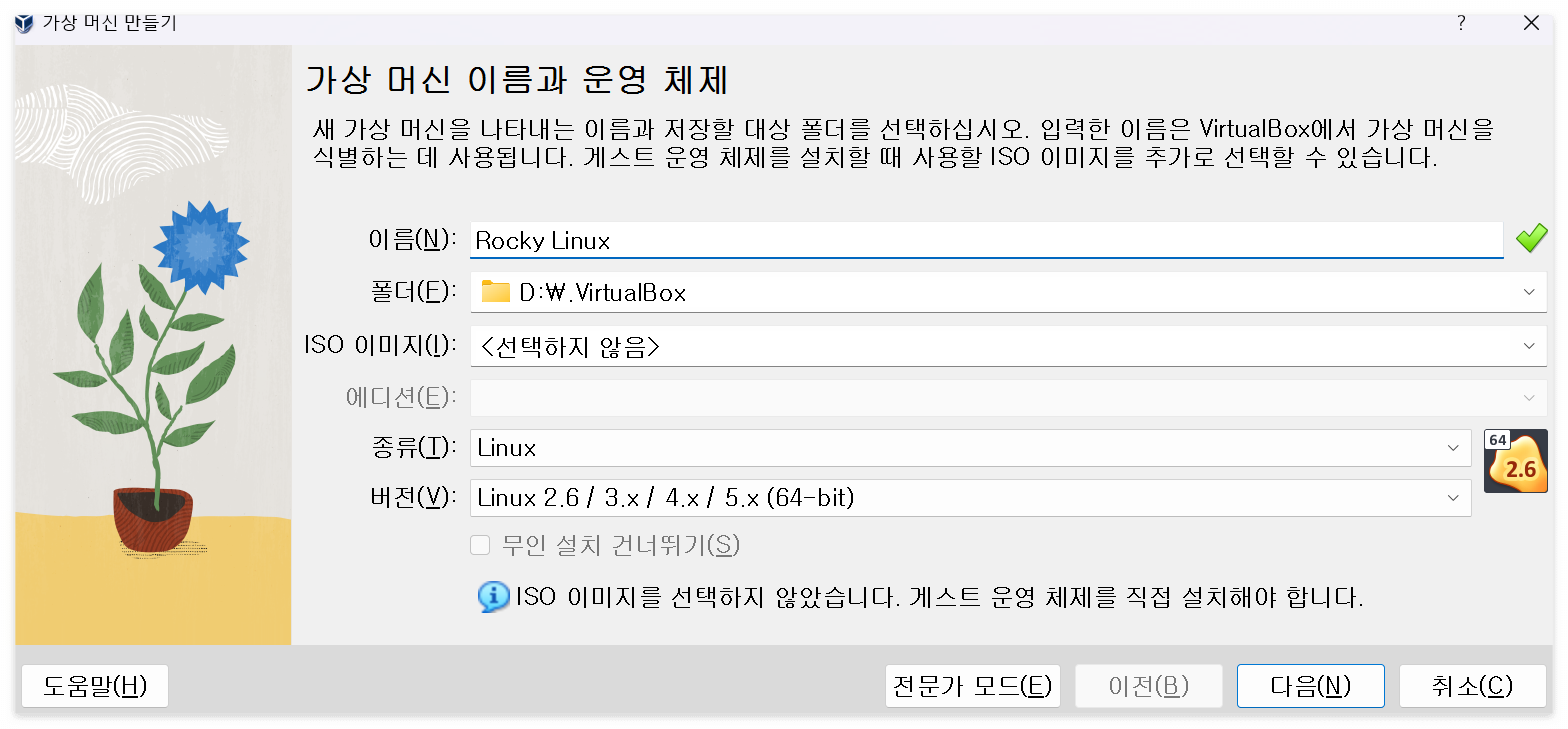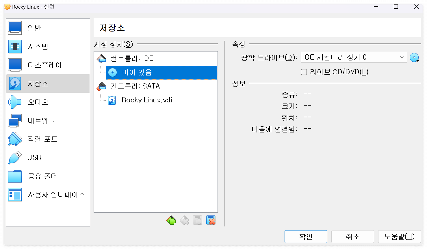 [비어 있음] 클릭 - 디스크 모양 클릭 - 다운로드한 iso 파일 선택