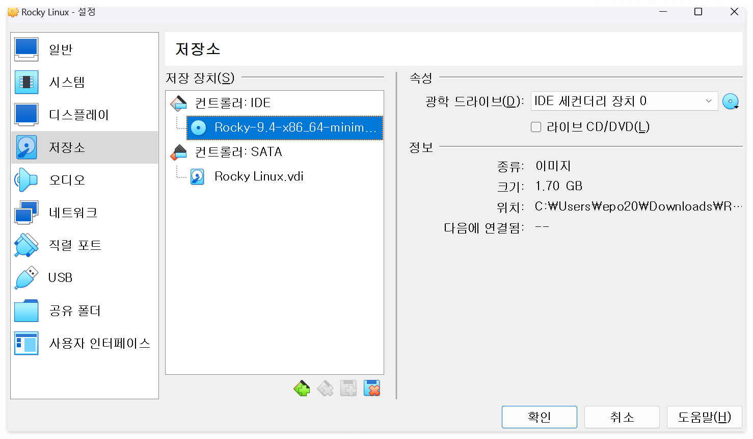 가상 머신 우클릭 - [설정] 클릭 - [저장소] 클릭