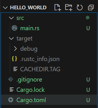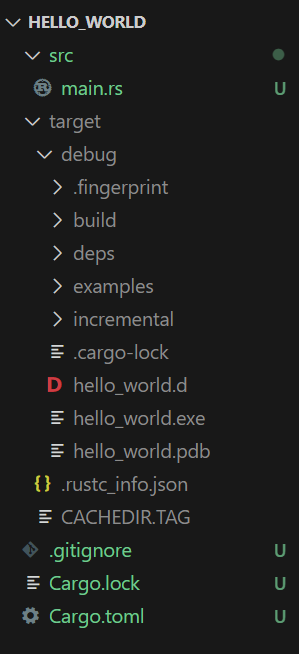 빌드가 완료되면 `target/debug` 폴더에 빌드된 실행 파일이 생성된 것을 볼 수 있다.