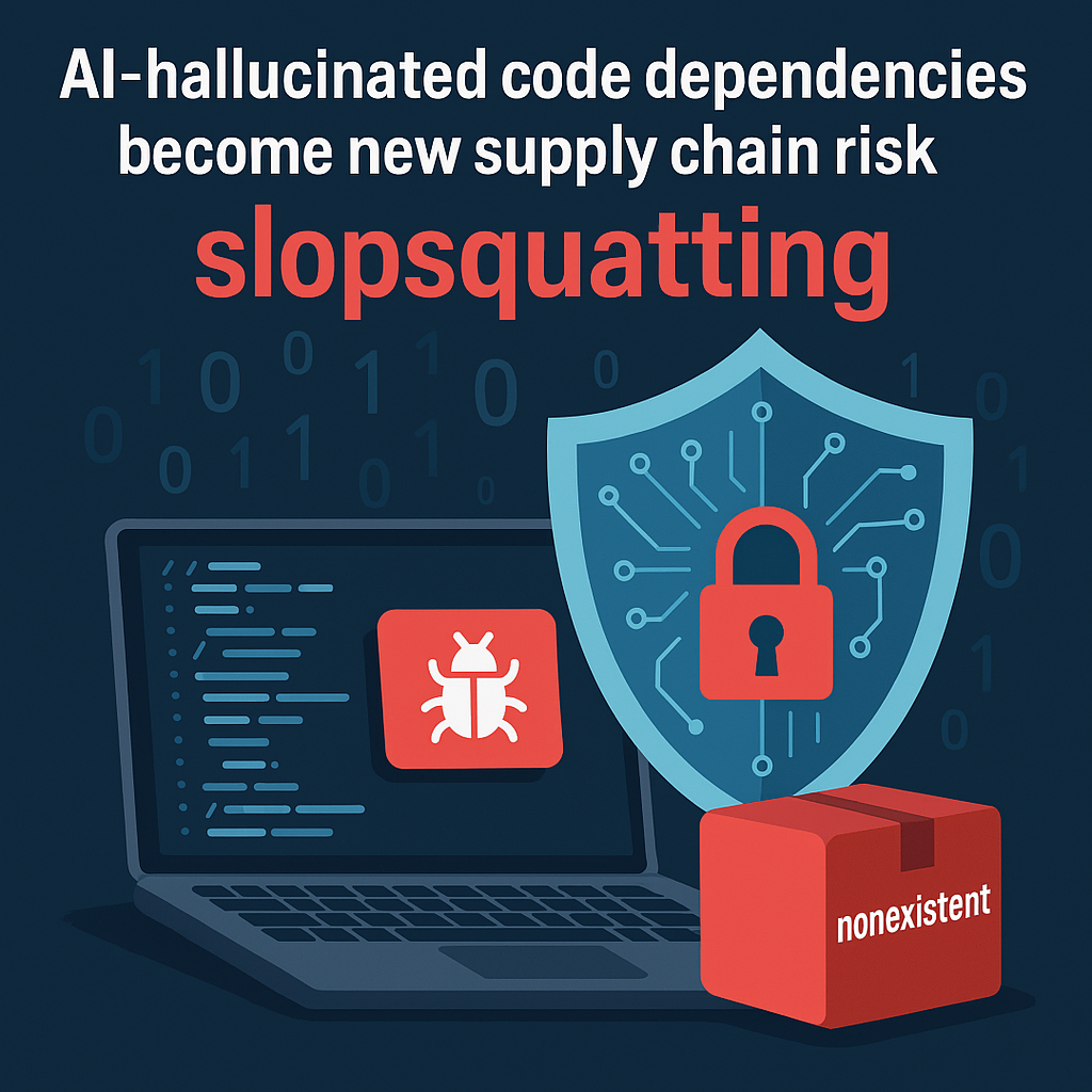 A new class of supply chain attacks named 'slopsquatting' has emerged from the increased use of generative AI tools for coding and the model's tendency to "hallucinate" non-existent package names.